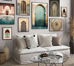 Reproduktionsmalerier, 3D-malerier, skillevægge, gazegardiner, dekorative malerier mm.